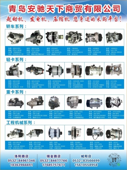 青島安馳天下——起動(dòng)機(jī)、發(fā)電機(jī)、壓縮機(jī)