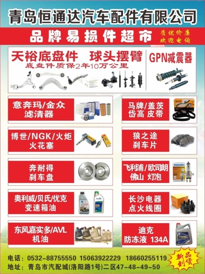 地址:青島市市北區(qū)洛陽路一號汽配城3區(qū)27-28號53-54號; 電話:18953218353