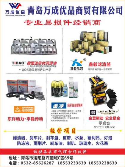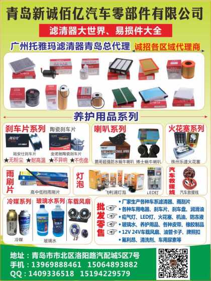 青島新誠佰億-各種濾清器、剎車片、喇叭、火花塞、雨刷片、燈泡