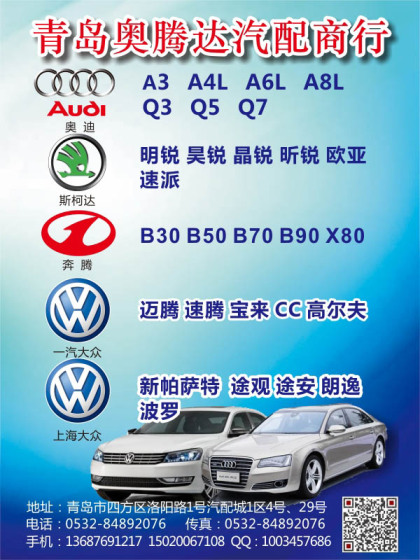 地址:青島市洛陽路1號汽車配件城C區(qū)66號; 電話:13518624413; 微信:13518624413; QQ:47101142